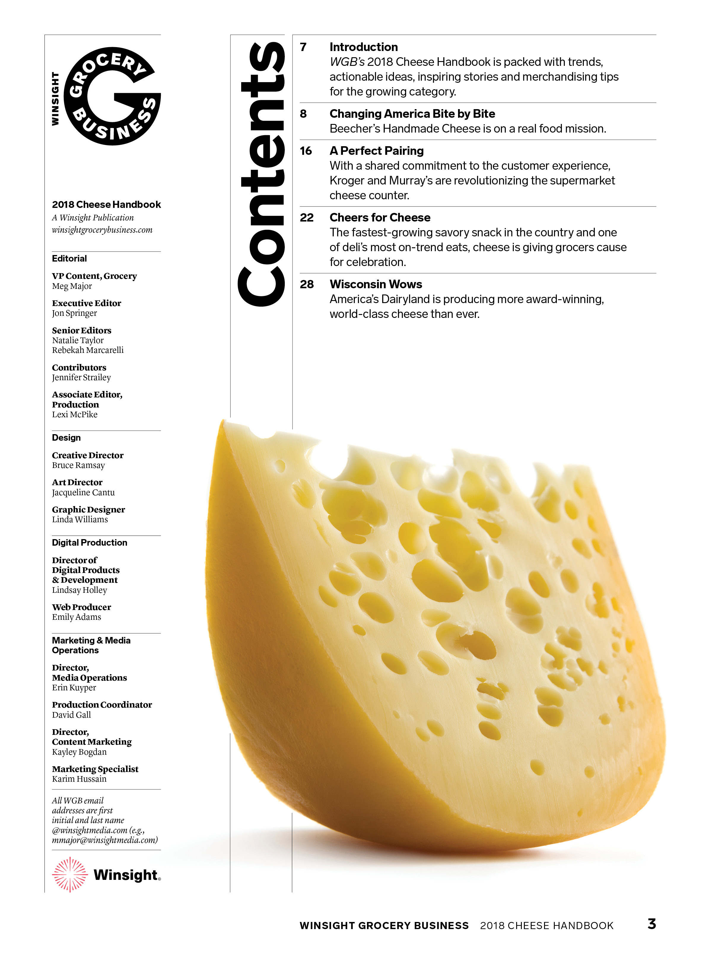 Created layouts for Grocery Business Cheese Handbook featuring articles on Wisconsin dairy farmers and grocers.