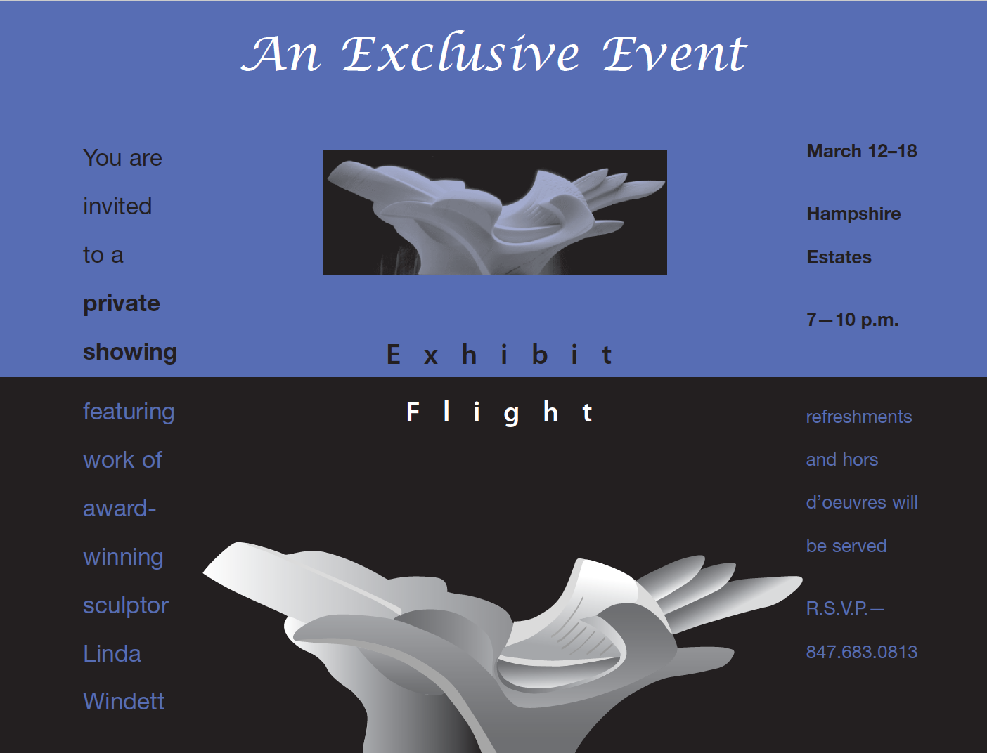 Designed and produced invitation to an exclusive event showcasing exhibit by sculptor.