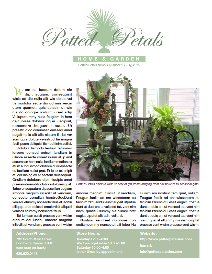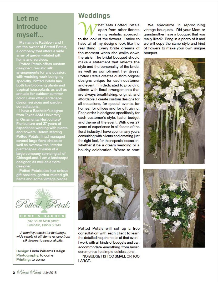 Created comp layouts for a new catalog concept displaying beautiful faux flower arrangements, products and pricing.